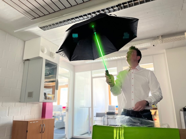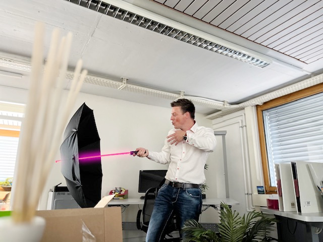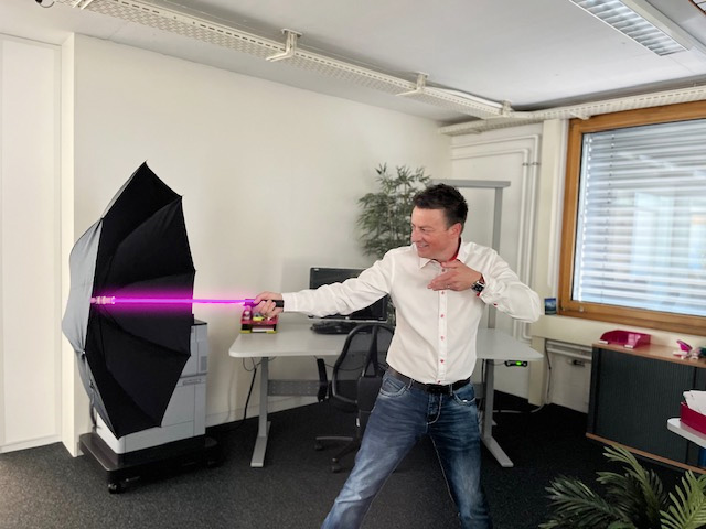 Allen voran Daniel Mettler, Unternehmer und Inhaber der 2sic internet solutions, hat seinen ganz persönlichen Spass an diesem Tag. Als großer Star Wars Fan freut er sich jedes Jahr auf den 4. Mai. Mit seinem neuen Geschenk, einem Star Wars-Laserschwert-Regenschirm, ist er nun auch für stürmische Zeiten bestens gewappnet. Wir freuen uns, dass wir ihm mit diesem besonderen Geschenk eine Freude machen konnten und unsere Leidenschaft für Star Wars zum Ausdruck bringen konnten.